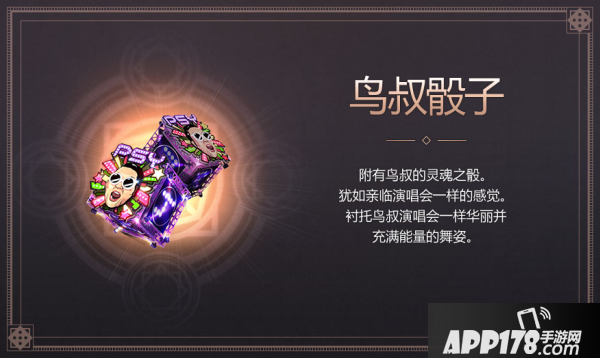 鸟叔骰子:附有鸟叔的灵魂之骰。犹如亲临演唱会一样的感觉。存托鸟叔演唱会一样华丽并充满能量的舞姿。
