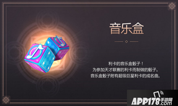 音乐盒骰子:利卡的音乐盒骰子!为参加天才联赛的利卡而制作的骰子。音乐盒骰子富有超级巨星利卡的成名曲。