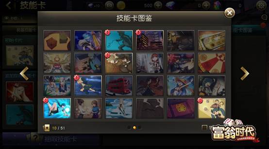 (游戏目前开放了54张不同属性的技能卡)