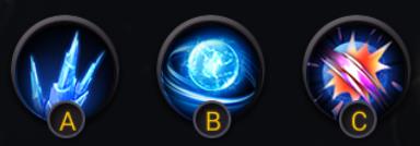 从左到右的技能顺序依次是:寒冰突刺一冰封球一咒能术(后面的技能小编还没开启)