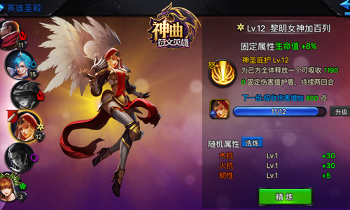 在《神曲之符文英雄》中,沐浴光之神力的黎明女神加百列,在出战时会固定增加玩家的生命值,并且让玩家可以使用“神圣庇护”这个强大的防护技。玩家可使用QTE技能,在变身黎明女神的同时,更将技能加强,为己方全体成员释放一个极为强大的伤害吸收护盾,持续两个回合。