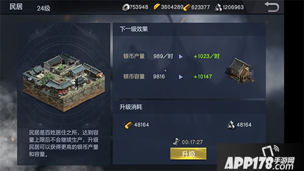 一个城市真正最重要的建筑是什么?相信我,必然是民居,没有民居的城市能叫城市么?虽然民居在游戏中的功能只有一个,就是提供银币。银币的重要性便不用我来多言,想必老玩家们都比我清楚的多。而民居也是可以升级的,等级越高的民居,能提供的银币也就越多。