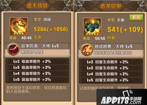 讲解:恶龙铠甲在于技能满时受到攻击有7%的几率回复10%血量,是最实用的回血装,没有之一。虚无项 链在技能满时提供10%的吸血几率,也是血誓红眼的必须装备之一,这点没的说