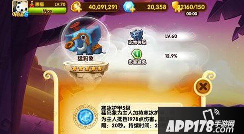 寒冰护甲:猛犸象为主人加持寒冰护甲,可以为主人抵挡1978点伤害。触发间隔:20秒 持续时间:20秒