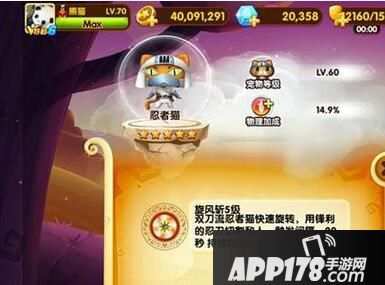 旋风斩:双刀流忍者猫快速旋转,用锋利的忍刀切割敌人。触发间隔:20秒 持续时间:5秒