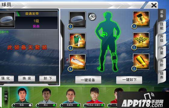 尽量给球员穿戴成套的装备吧,属性上会有很大提升。