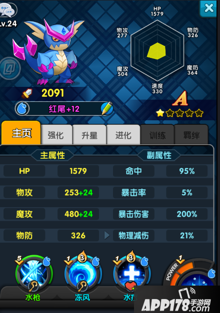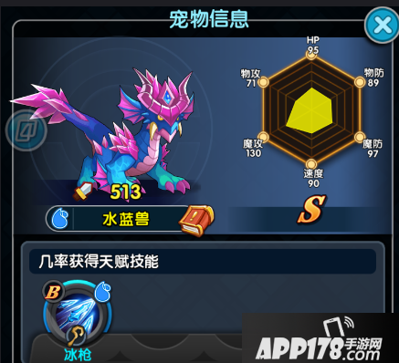 当它进阶为水蓝兽是有几率让水枪进阶为冰枪(对敌人造成魔70%的伤害并对冰冻目标必定造成暴击。