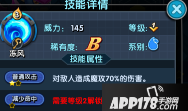 主动技能:冻风--对敌人造成魔攻70%的伤害并降低对方的命中