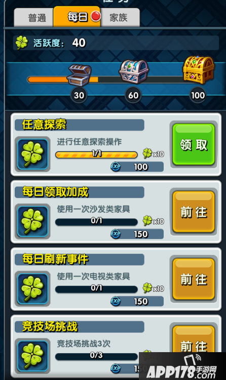 每日任务还提供了活跃值奖励,完成对应的每日任务后可获得一定的活跃值,而当活跃值达到一定数值后,可以获得宝箱奖励。训练师们需要注意的是,每日任务刷新的时间是在每天早上05:00,任务完成后以及活跃值满足领取奖励后一定要及时领取,如果未领取但任务已经刷新的话,那么就不能够再领取奖励了啦!