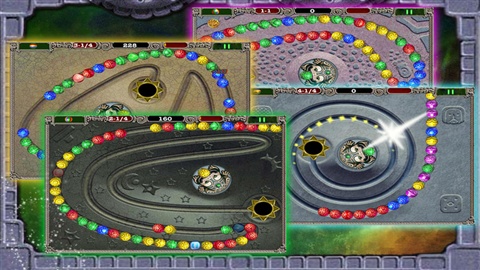 古印加祖玛HD古老的界面,神秘的印加背景音乐,加上游戏的主人翁-青蛙祖玛坐在其中,吐出各种颜色的珠子。环绕着石青蛙的是载着彩球的轨道,彩球会沿着轨滚动。石青蛙吐出彩球进入轨道,轨道上颜色相同的彩球,数量达到三个以上就会消除得分。