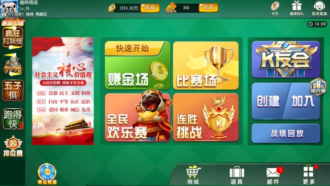 河池字牌是一款非常有河池当地特色的字牌游戏,在这里你可以体验到全新的新鲜感,丰富的益智字牌玩法,好友约战实时竞技,趣味的动画过场,赶紧来体验一下这款休闲的特色字牌游戏吧。