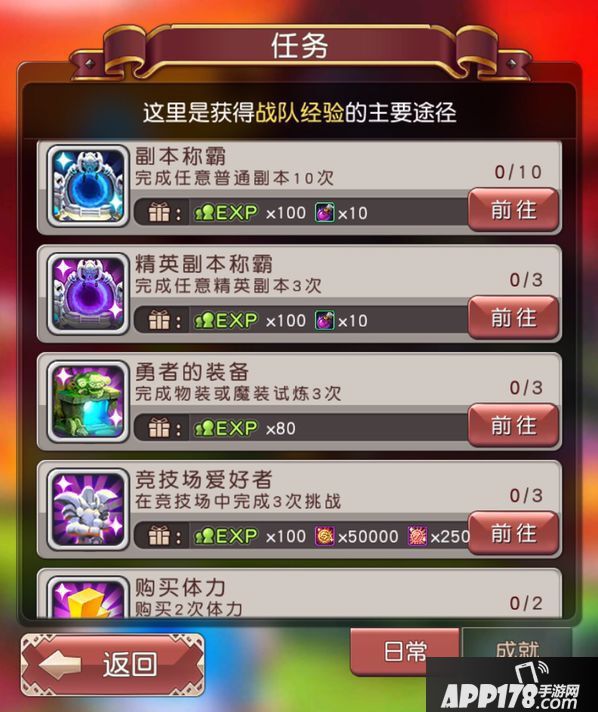 买体力:充足的体力对于升级来说尤为重要,越到后期越重要,对新手而言,100钻买一次的体力,是要适当买的,尤其是周末双倍掉落时。拥有月卡和终身卡的玩家,如果是在新区爬排行榜,建议每天体力全买。