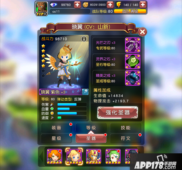 每个英雄有3个圣器栏位,对应为专属武器,圣器之石,圣灵之戒,开放圣器后自动获得,无需装备。