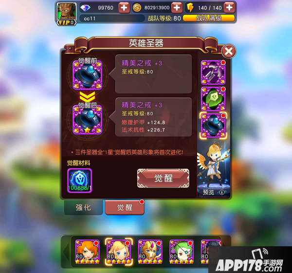当拥有足够的材料时可以选择觉醒,觉醒后会提示圣器的星级,最高7星。材料可以通过公会副本和召唤石内获得。