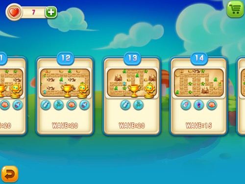 相比上一个关卡,怪物的波数没有改变,但防御塔的配置却变少,同时初始资金也有所减少。这也就意味着本关游戏难度会有所提升,特别是只有风车塔,前期肯定有点压力,大家都知道风车塔在前期并没有多大的火力,需要成群的风车塔才给力。