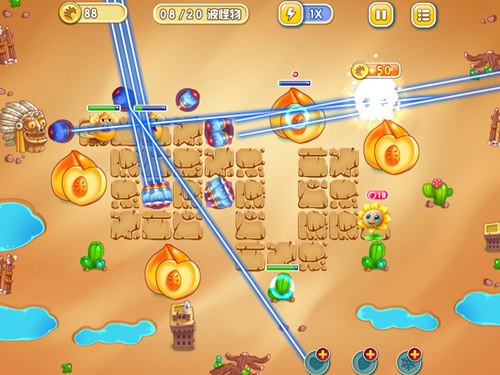 由于本局的初始资金较多,所以可以摆出很多阵容,这边小编推荐射线塔土豪阵,也就是全图激光射线塔,满屏的激光效果,绝对亮瞎怪物双眼。所以在初始的入口区域就可以建造多个防御塔,并慢慢地升级,等到第10波的时候就可以专门清理后面的障碍物,你就会发觉这20波的攻势就在眨眼之间,再来几十波都没有任何问题。