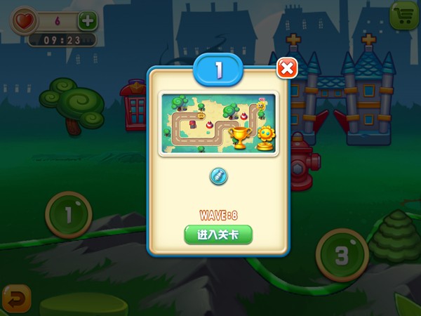 本关作为该3D主题的首个关卡,只有8波敌人,所以通关难度并不大。本关的防御塔配置只能建造圆珠塔,但也足以抵挡。即使你会觉得圆珠塔的攻击火力不够,但在新版3D主题关卡中每一关都会有明星防御塔助阵,强大的火力支援也是攻关的最大助力。