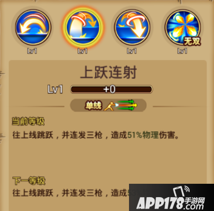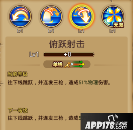技能介绍:单线攻击,施放该技能,向上线跳跃并射击对前方敌人造成伤害