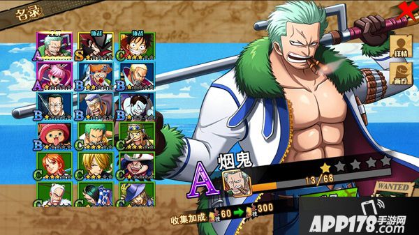 点击打开游戏主界面的名录系统。名录中可以看到游戏中的所有人物,包括你当前已经拥有的所有人物。在这里,可以查看人物的详情(人物属性和技能)、星级和收集加成等。同时,可以进行人物合成和升星等来提升人物的战力。该界面还可以设置人物出战, 快选择你想要的人物上阵出战,征服伟大航路吧!