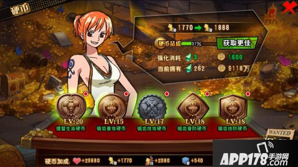通关冒险副本2-2“寻找路飞”后开启专属物品系统,点击打开游戏主界面的专属物品。通过强化不同人物的专属物品(路飞的草帽、佐罗的和道一文字等,将带给你原汁原味的海贼王气息),可以获得对应的专属属性加成,是提升人物战力的重要途径。