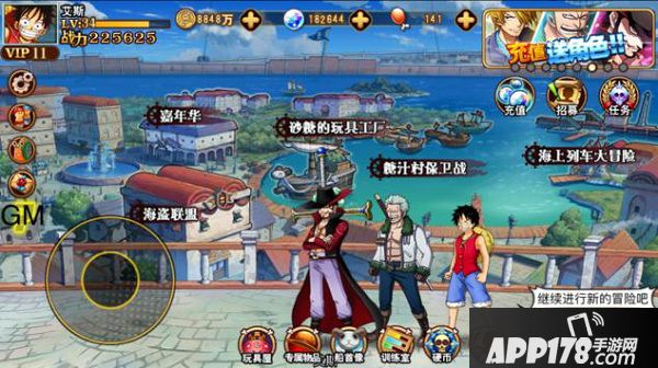 货币栏处显示了你目前拥有的贝里和虹宝石。贝里是激战世界中最基本的流通货币,虹宝石是激战世界中最重要的流通货币。当贝里和虹宝石不足时,可以点击打开游戏主界面的充值界面进行充值。充值还可以获得对应的VIP特权。在开启伟大航路的征途前,一定要带够足够的金钱。除了日常游戏任务和玩法可获得虹宝石和贝里外,充值也是你最快的成长方式喔!