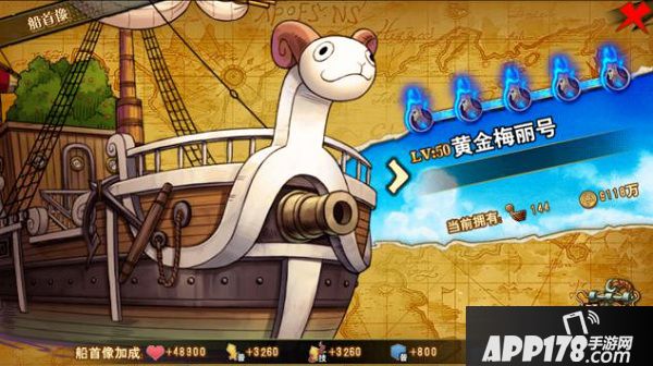 通关3-3“黑猫海贼团的入侵”后开启船首像系统,点击打开游戏主界面的船首像。通过对船首像的升级可以获得船首像属性加成,提升人物的总战力。每个船首像提升至50级时,可激活下一个船首像,获得大量的属性加成,是人物战力提升的重要途径。