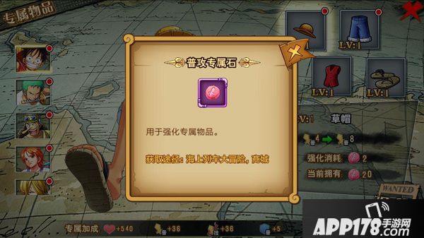 通关冒险副本2-2“寻找路飞”后可开启专属物品系统