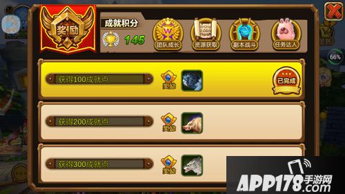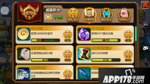 首先,成就系统中的任务板块,共分为四种任务:团队成长,资源获取,副本战斗,任务达人。当玩家根据任务要求完成相应任务后,就可以获得成就积分。