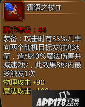 PS:由于继39的法系武器骷髅法杖以后,法系并不是有太多武器选择,而这件装备在入手难度上,比其他法系高阶装备更容易入手,攻击力对得起等级,特效的话给队伍里的主力法系英雄是个不错的选择,8秒一次的触发以及35%的触发率和40%的魔法伤害并带减速效果,无论是副本还是竞技场都能很好的适用。