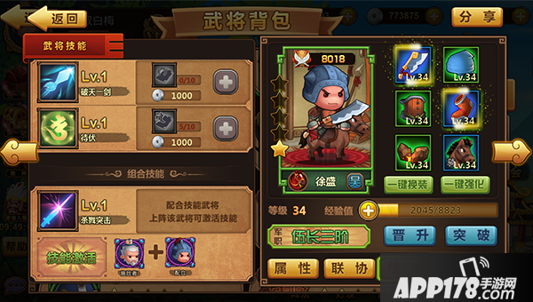 组合技能:【杀戮突击】——由黄盖施放和徐盛的组合技,骑兵部队提升韧性,持续2回合。