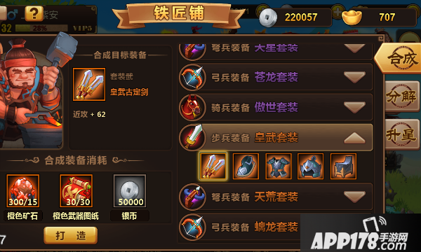 2、铁匠铺打造。铁匠铺出产的装备皆为套装,凑齐有套装属性。不过铁匠铺打造需要矿石和装备图纸。
