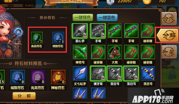 游戏中难免会获得一些多余的不需要的装备,多余的装备在铁匠铺可以进行分解,分解装备可以获得不同品质的符石。