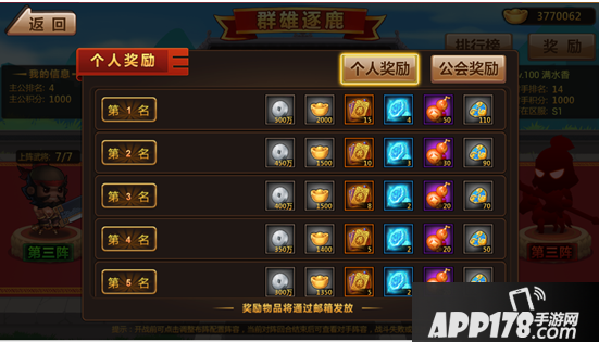 群雄逐鹿奖励: