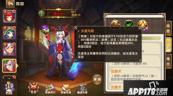 嗯哼,先不管她是好是坏,怎么说也是一个资质13的红色等级英雄,是超稀有的存在啊。让我们来看看她有多厉害呗~