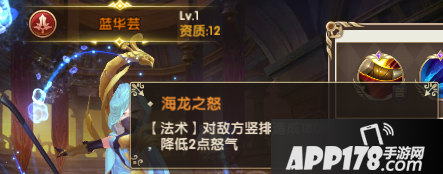下图便是属于进攻职业的蓝华芸,在他的名字前面有着象征进攻的红色短剑标志。蓝华芸的技能能在给予敌人群体伤害的时候附加减怒效果,是强力的进攻技能。