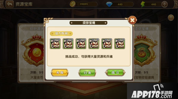 须弥宝境也是和其他两个资源本一样一样的,通关即可解锁下一难度。不过须弥宝境没有招财洞天和战魂之墟那么复杂。