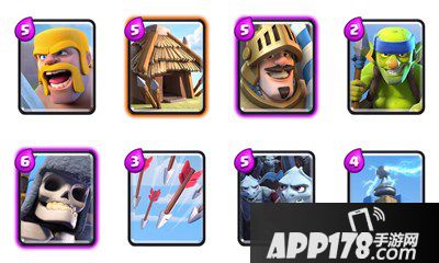 遇到大皮卡怎样办,遇到野蛮人和王子怎么办?这套牌中就是靠这些亡灵大军作防守。能杀到他们之余,更可以骗箭雨,一举两得的卡牌,也会用来击杀已经在打塔的幼龙,看情况也能配合用于补充进攻力量。