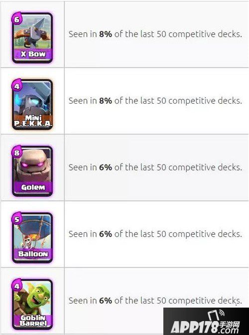 APP178手游网>皇室战争>游戏攻略>近期卡牌使用率排行:X弩神教再度崛起