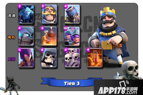 T3当前环境中可以在少数套路中有所发挥,不建议部落内乞讨,但金币富余的时候可以考虑在商店买几张。