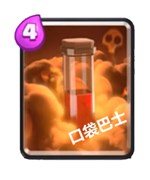 毒药可以非常有效的克制小屋或者有很多低血量单卡的套牌。玩家最好还是把它放在你这边的战场上,搭配上防守塔的伤害,将敌人的部队减速并且干掉,赚取圣水费用差。