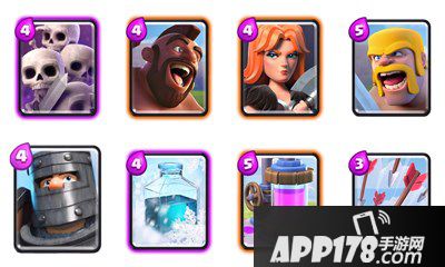 卡组平均耗水4.1,在有圣水收集器的卡组中这点耗水并不算高,再加上这个卡组不会有太耗水的爆发套路,所以整体费用还算够用。在A7段卡牌等级比图上稍低一点还是可以一战的,但到A8段卡牌等级有多重要不用我多说了。