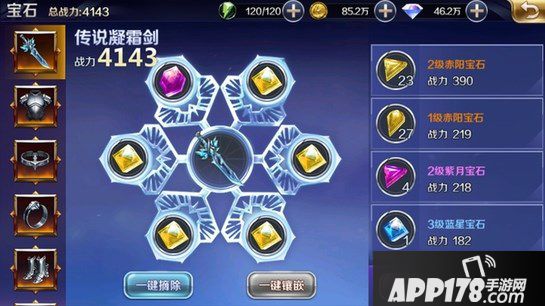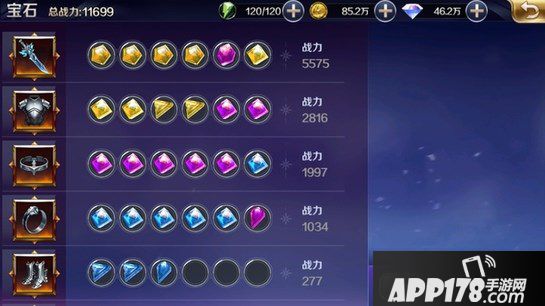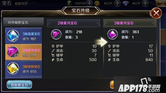 宝石可以升级,消耗3个同样同等级的宝石可升级成更高级的宝石