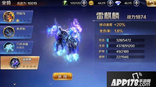 3、坐骑外形酷炫,还有战力增加乘骑可增加移动速度,不同坐骑属性不同