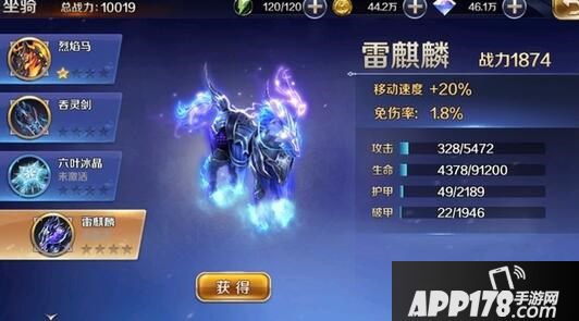 3、坐骑外形酷炫,还有战力增加乘骑可增加移动速度,不同坐骑属性不同