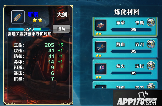 进阶:炼化达到满值时武器自动进阶,大幅度提升武器属性。并且武器的品质进阶到高品质。