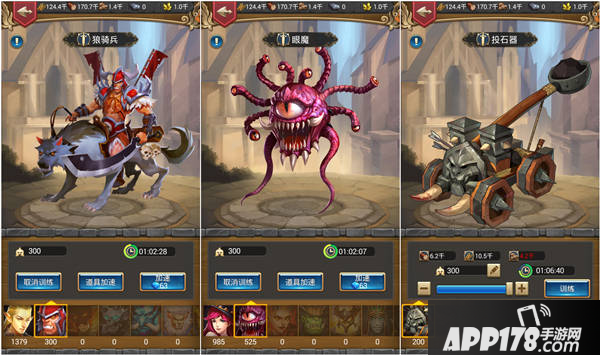 在游戏的初期,先不用训练过多士兵,够用就好。你要做的是利用前期任务奖励资源来升级相应的主城建筑,用于提升兵营等级来达到训练高级士兵的生产权。同时,利用召唤法阵的增加训练量加快士兵的产出,这样才能在各种战斗中占据更大的优势!