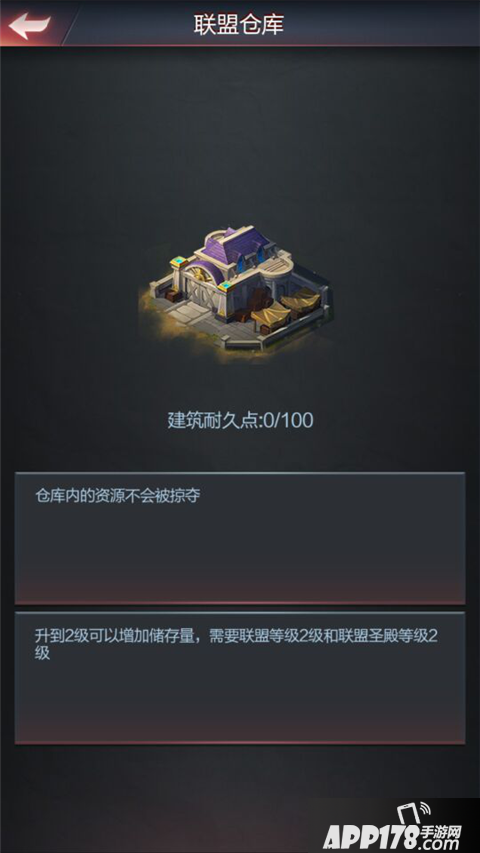 仓库防守坚固,联盟仓库储存的资源不会被掠夺,所以合理的将现有的资源存放到联盟仓库里十份重要。联盟仓库在游戏中保护着玩家的资源,在王者远征这样一款讲求消耗资源才能发展的游戏里是不可忽视的一个建筑,被保护的资源越多才能在后续的对战中占据优势。