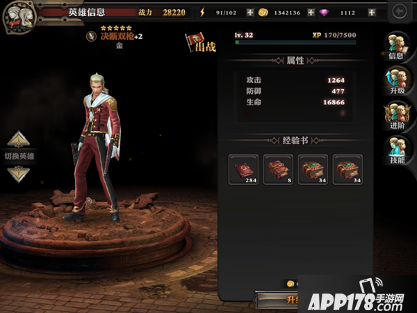 英雄升级会消耗经验书。每次升级会永久提升英雄的攻击、防御、生命。英雄的等级不能超过玩家自身的等级。