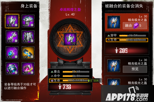 现在来具体介绍一下符文玩法,符文融合可以让我们将一些不需要的装备作为材料,融合进身上同部位的装备中,提升符文属性。符文的融合需要消耗符文精华,这项资源可以在宝箱,潘多拉魔盒中获取。如下图,当作为融合材料的装备如果与身上的装备有相同的属性类型,则融合时会更升更多的数值。现在知道30级之前攒的装备怎么用了吧!