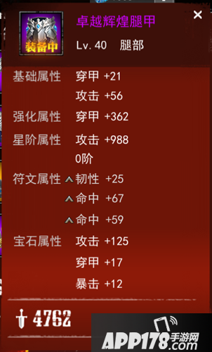 游戏中的装备有8件,分别是头部、胸部、武器、腿部、护石、戒指、项链、腰带,每一部位的装备都加成两项不同的属性,我们称它们为主属性与副属性。装备可以分解为同品质的装备碎片,而一件装备也可以吸收一定数量的同品质装备碎片来进化,获得更强的属性!装备可以从白色、绿色、蓝色、紫色、橙色、红色一路进化上去,高级的装备图标还会有酷炫的流光特效!看到下图的全身橙色+6装备有没有流口水呢!